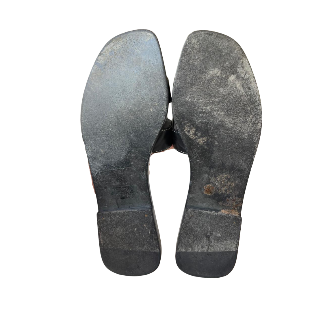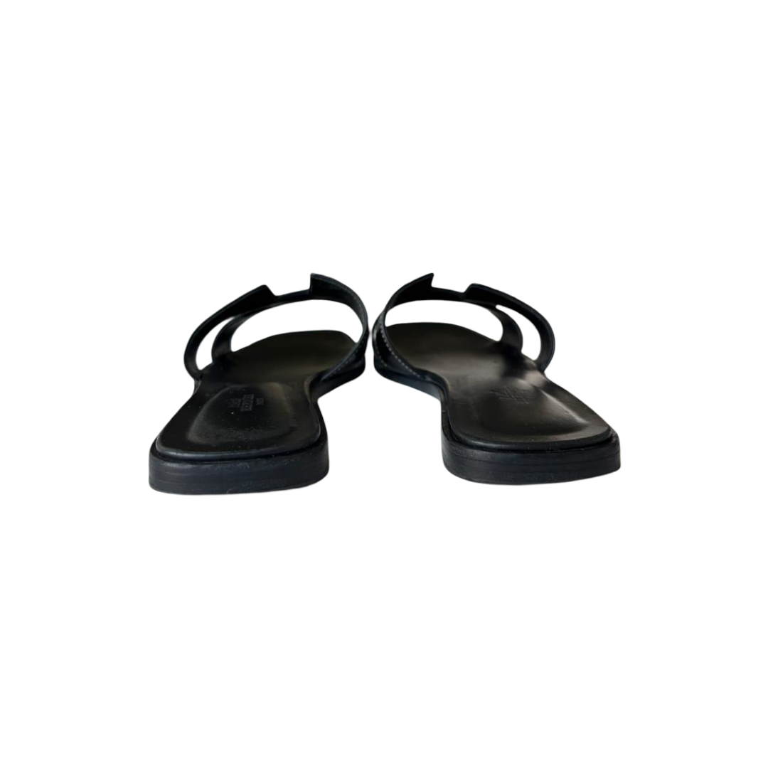 Hermès Black Calfskin Leather with White Topstitching Oran Sandals — Size 39