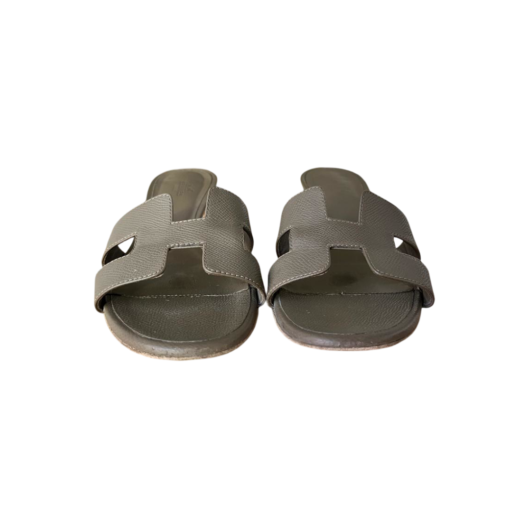 Hermès Etoupe Epsom Calfskin Leather Oasis Sandals — Size 40