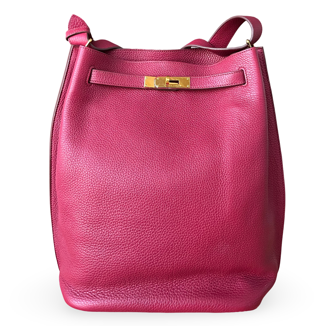Hermès So Kelly 26 Shoulder Bag in Clémence Leather – Rubis