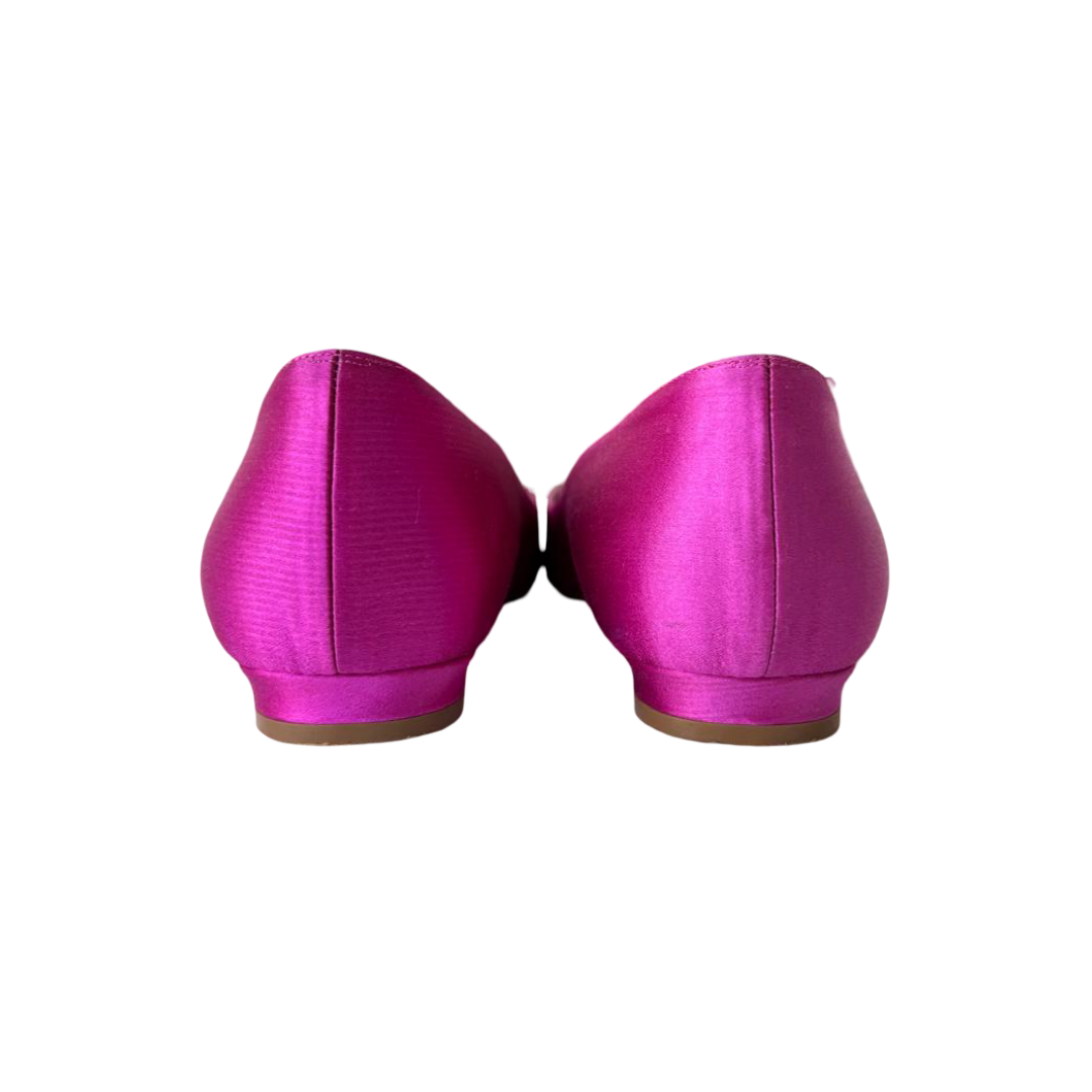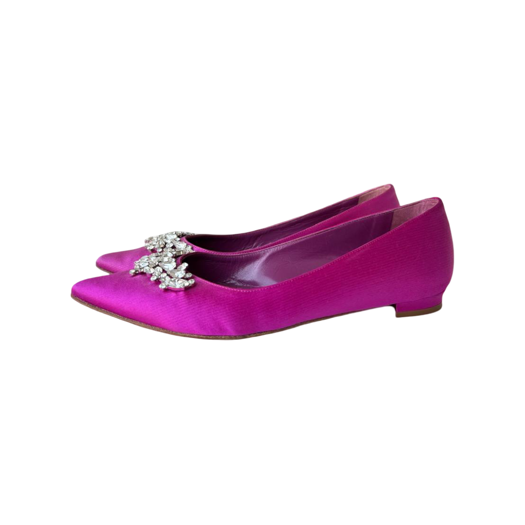 Manolo Blahnik Fuchsia Satin Lurum Crystal-Embellished Ballet Flats — Size 36.5