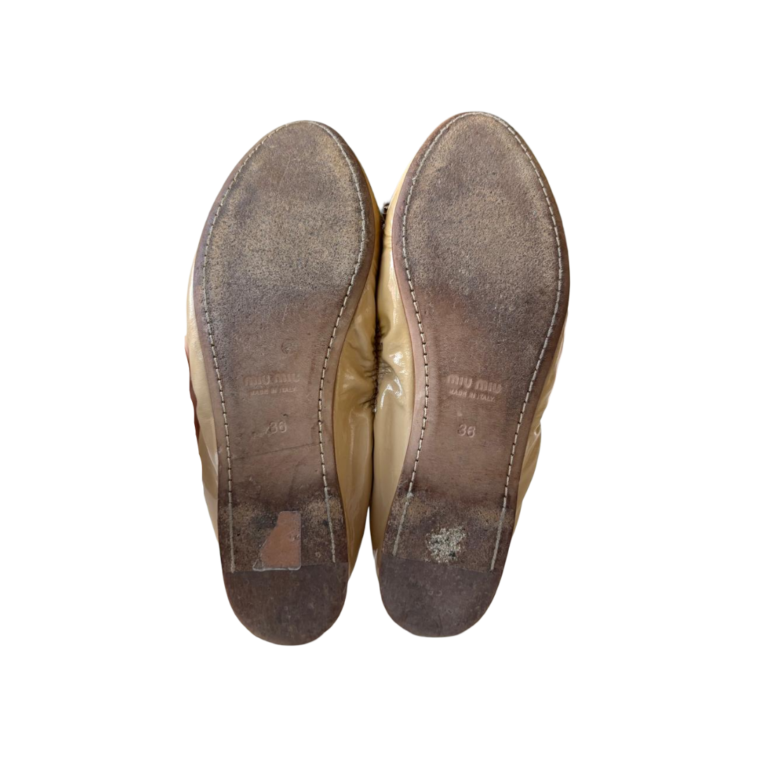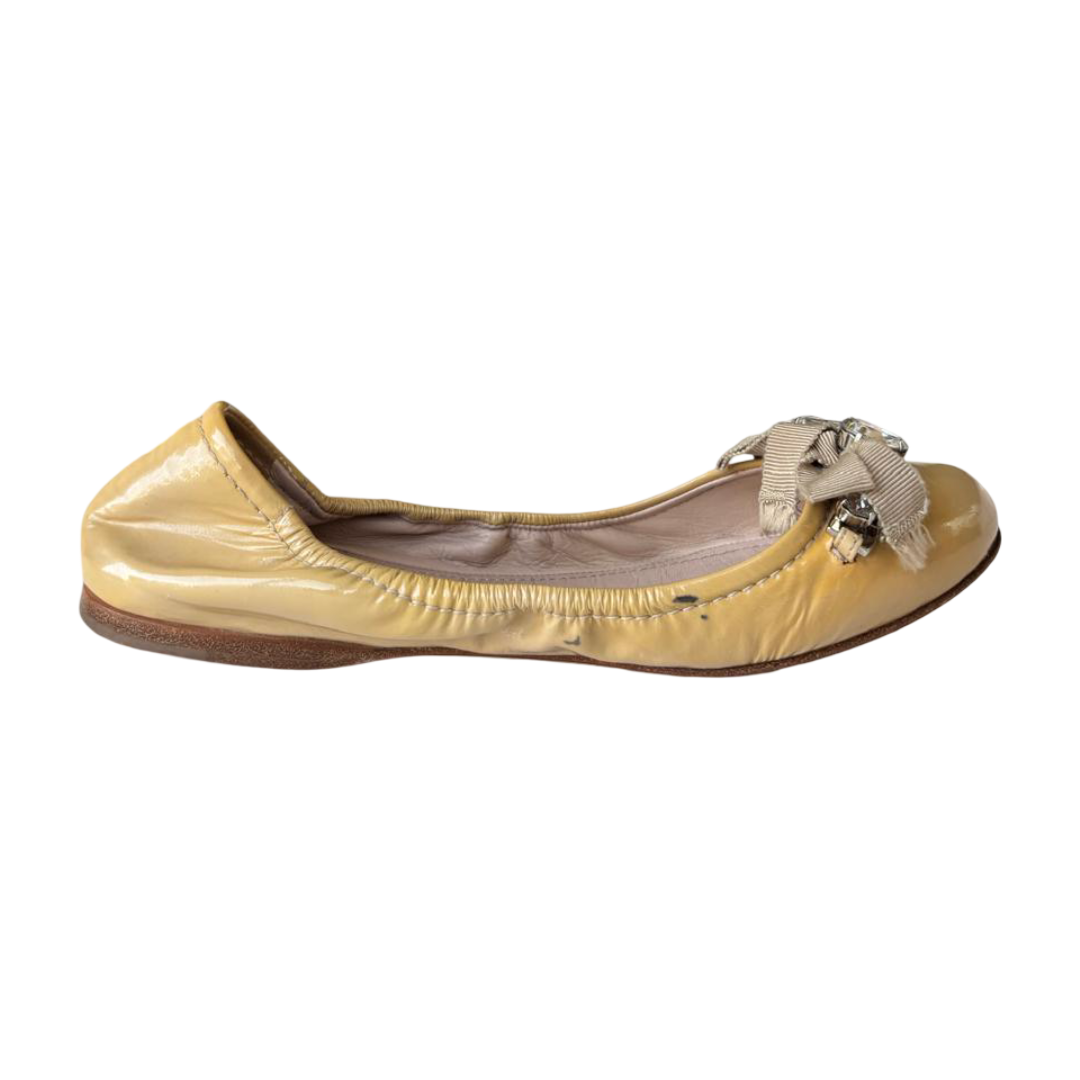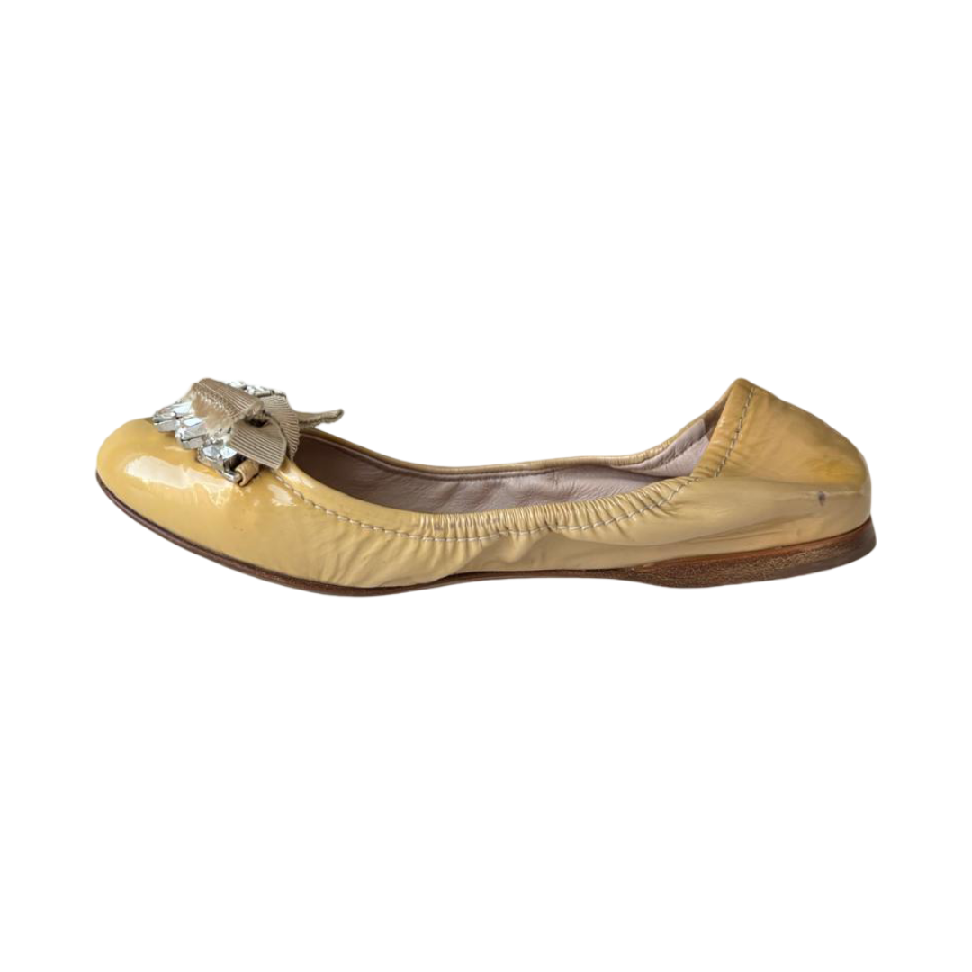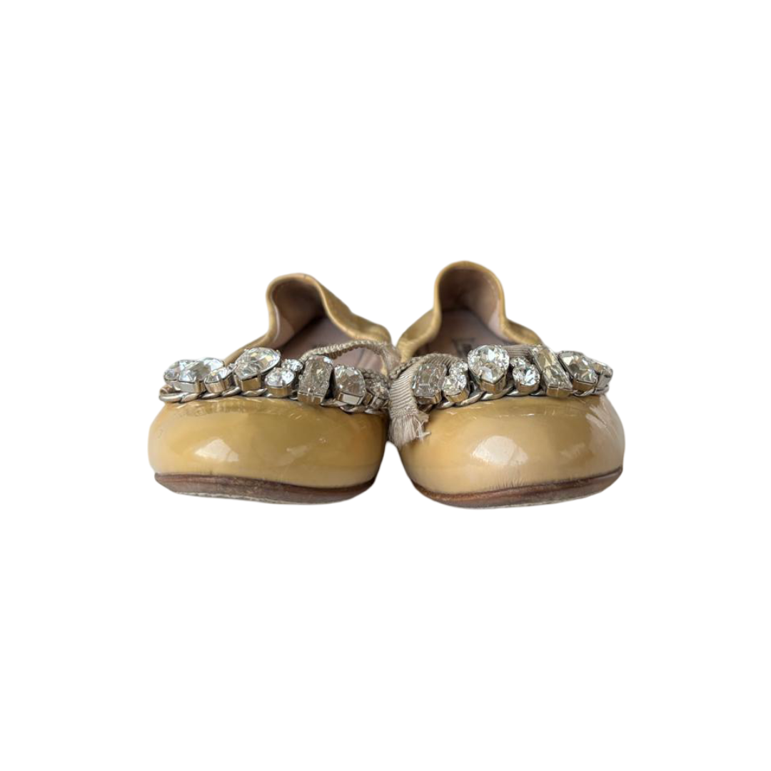 Miu Miu Beige Patent Leather Crystal-Embellished Ballet Flats — Size 36