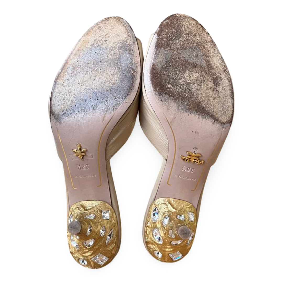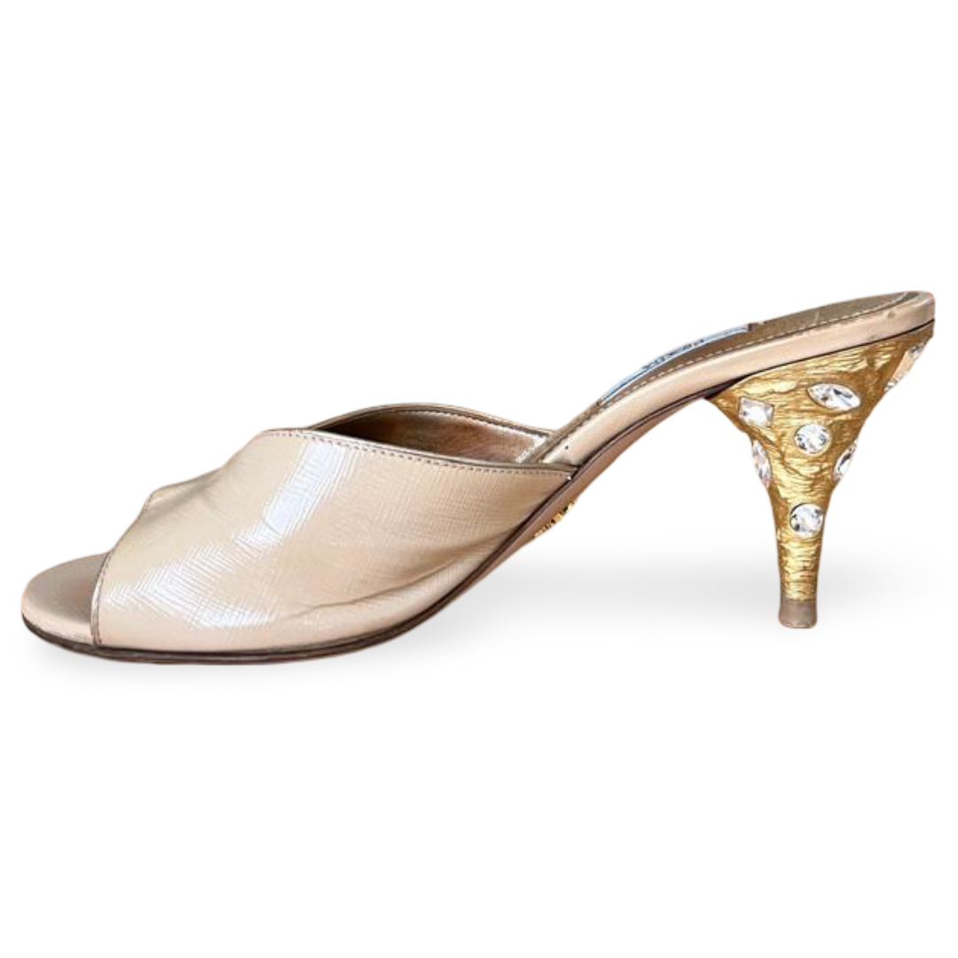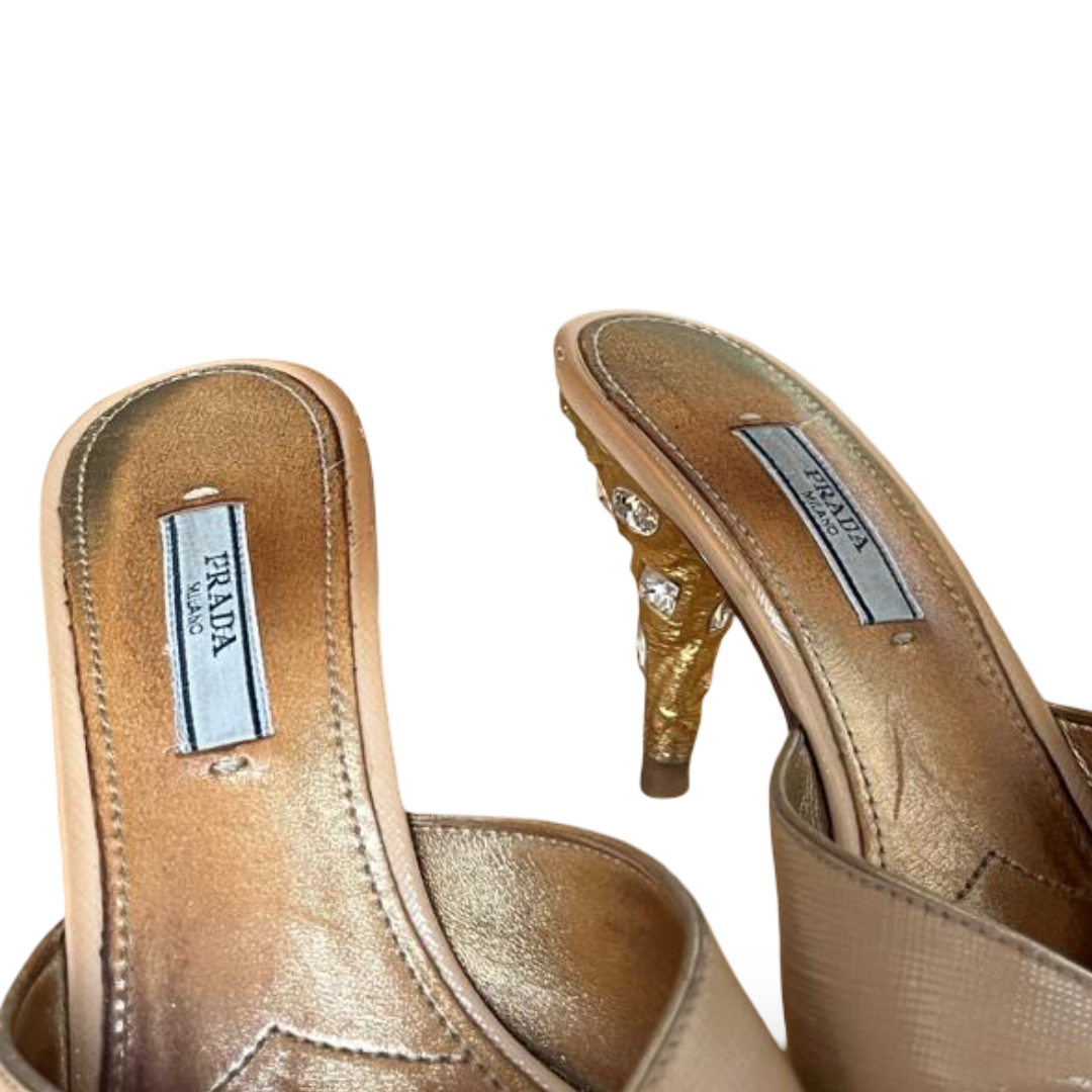 Prada Gold Saffiano Leather Slide Sandals – Size 38.5