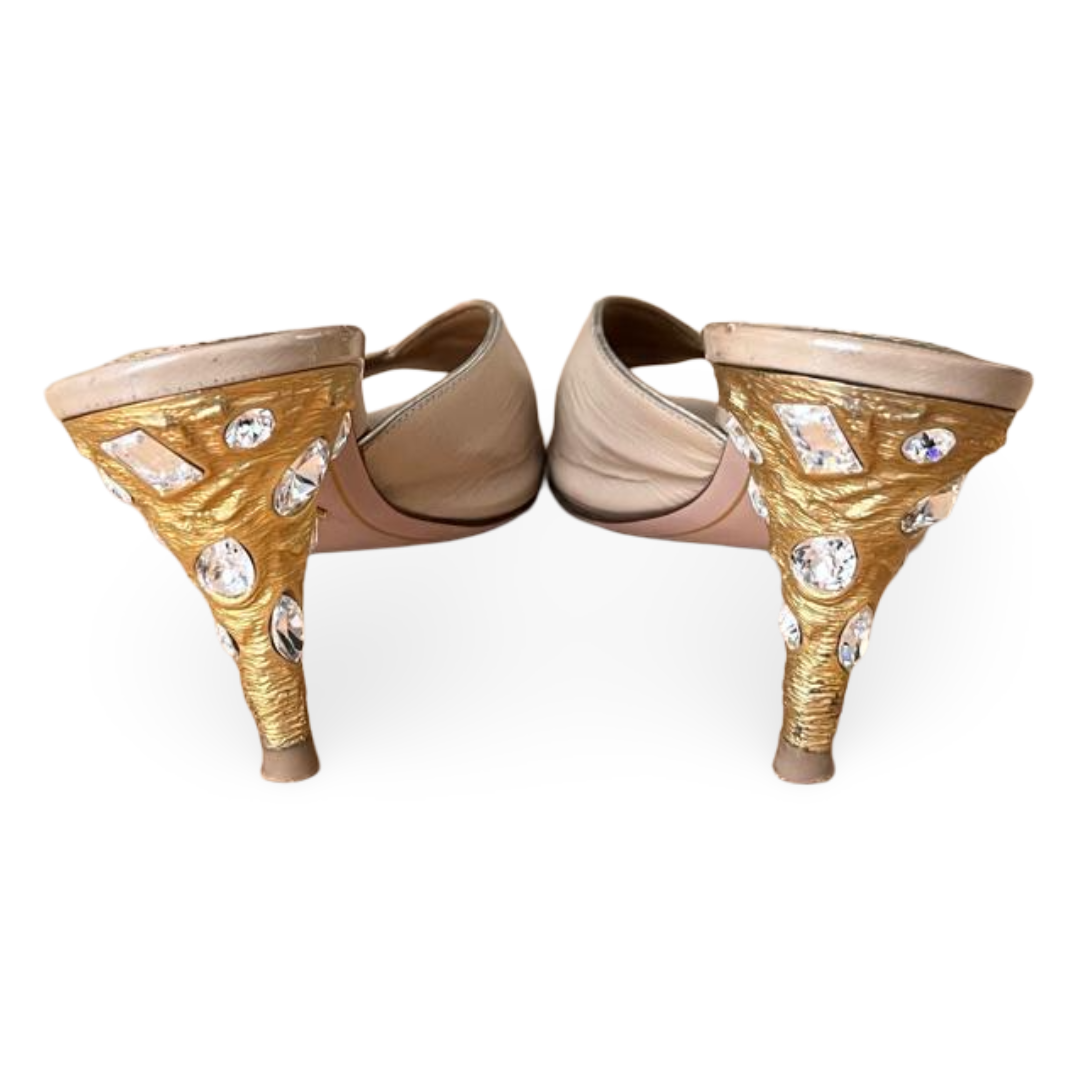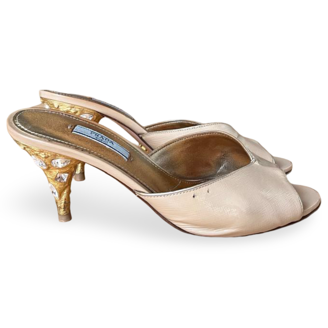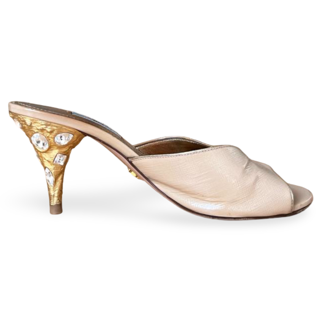 Prada Gold Saffiano Leather Slide Sandals – Size 38.5