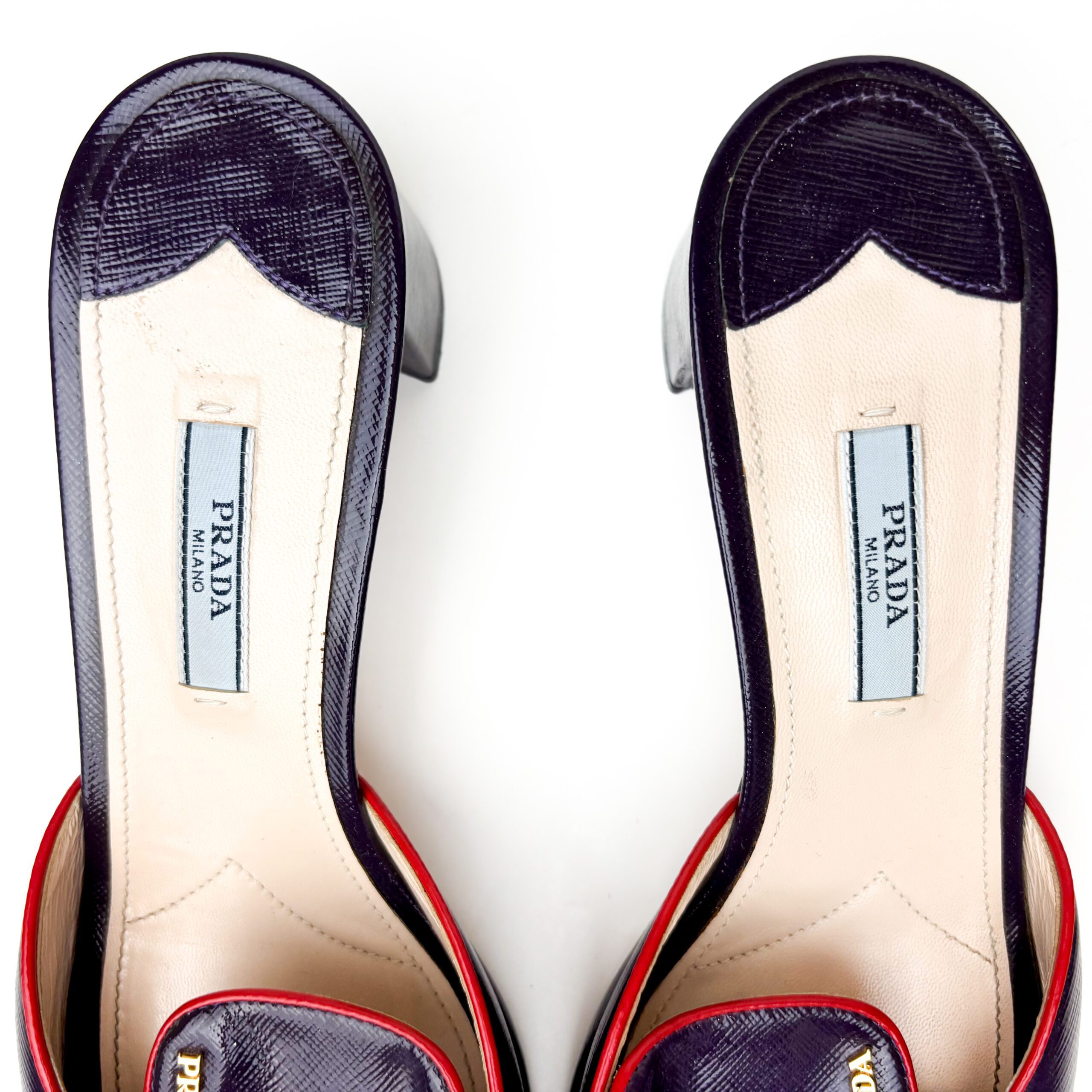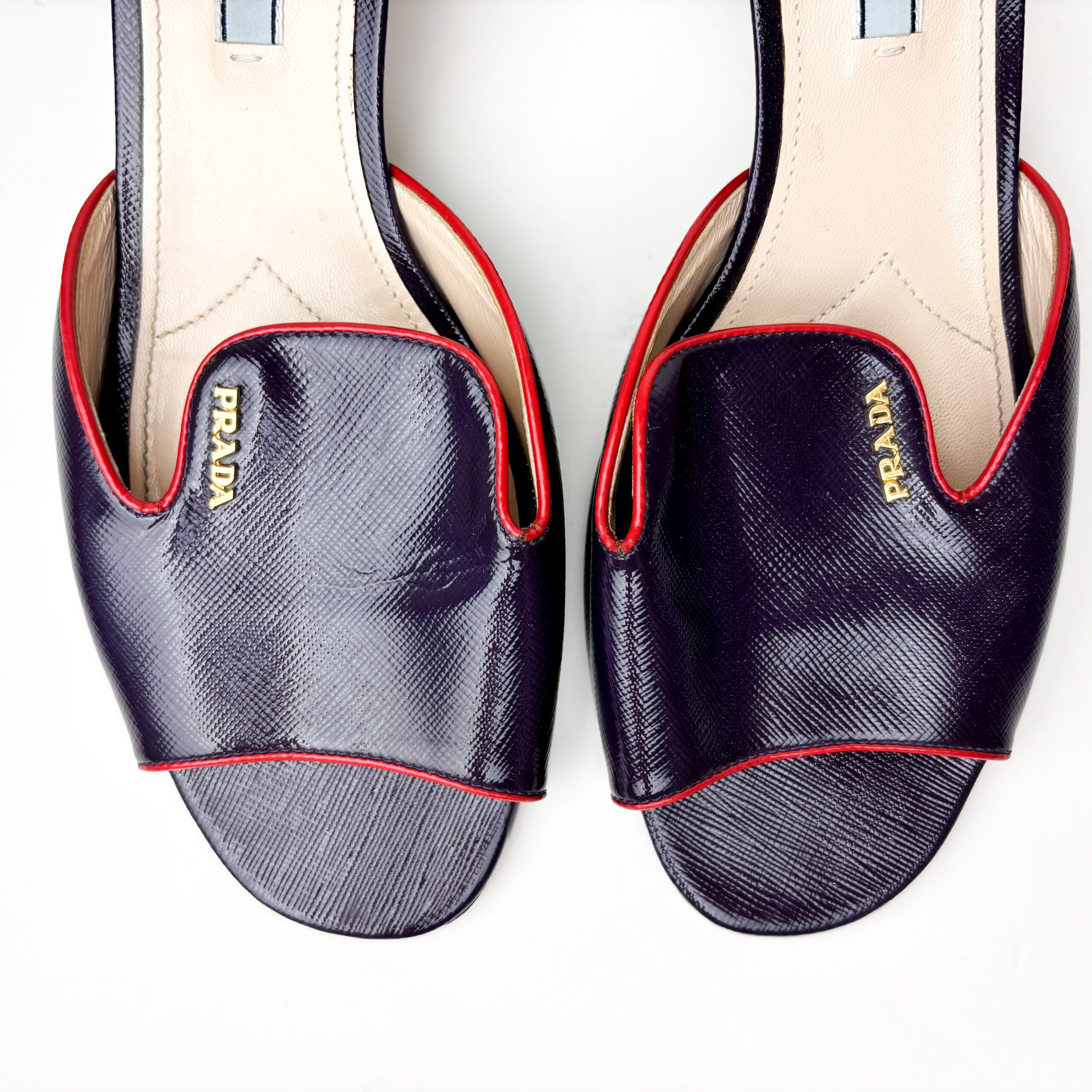Prada Purple Saffiano Patent Leather Logo Block Heel Pumps – Size 40 - Image 2