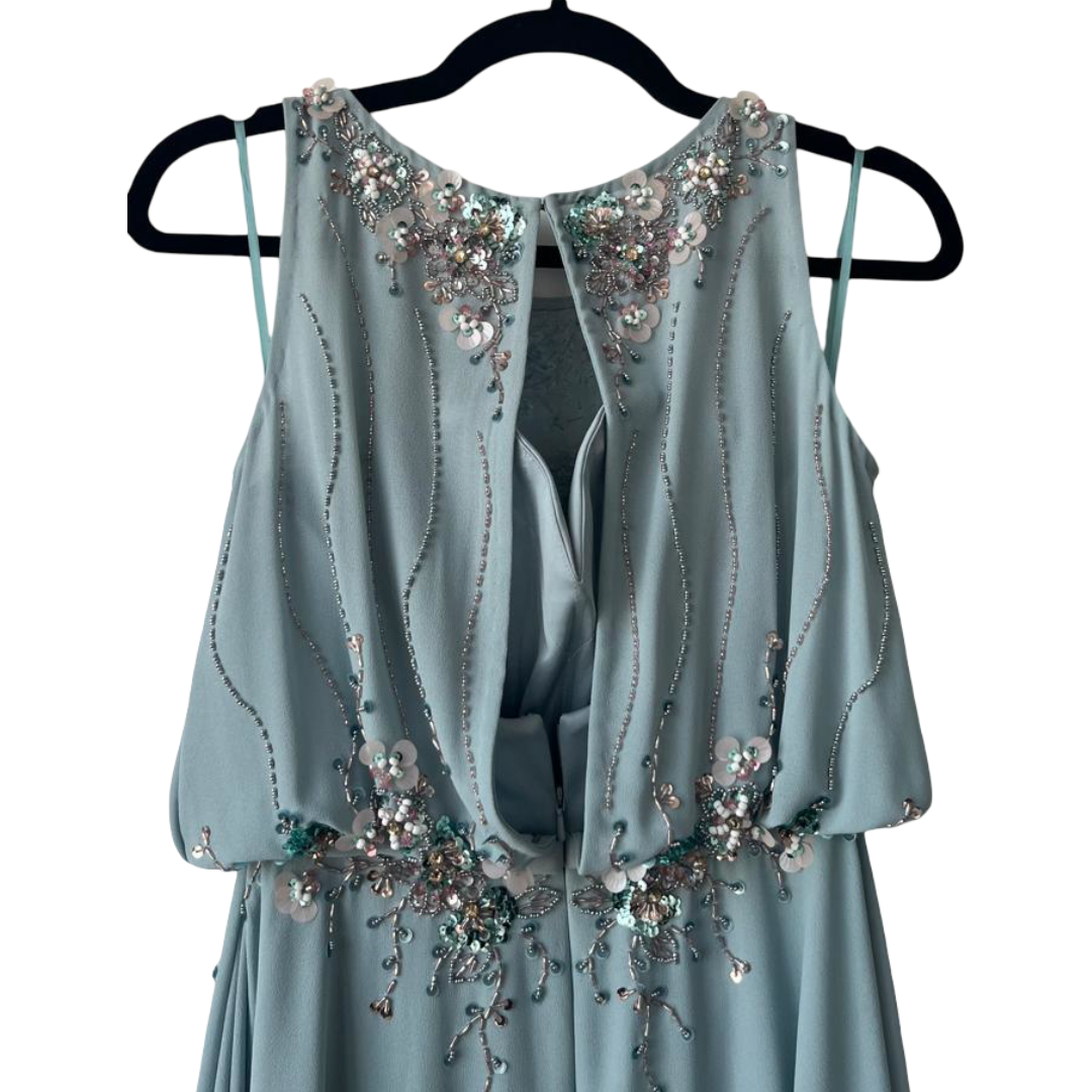 This Pronovias ETQ Vestido in Grey Mist is a sophisticated floor-length gown designed for evening wear, galas, or formal occasions. It features a beautifully tailored silhouette with a soft, elegant drape that flows gracefully to the floor, creating a timeless and refined look.