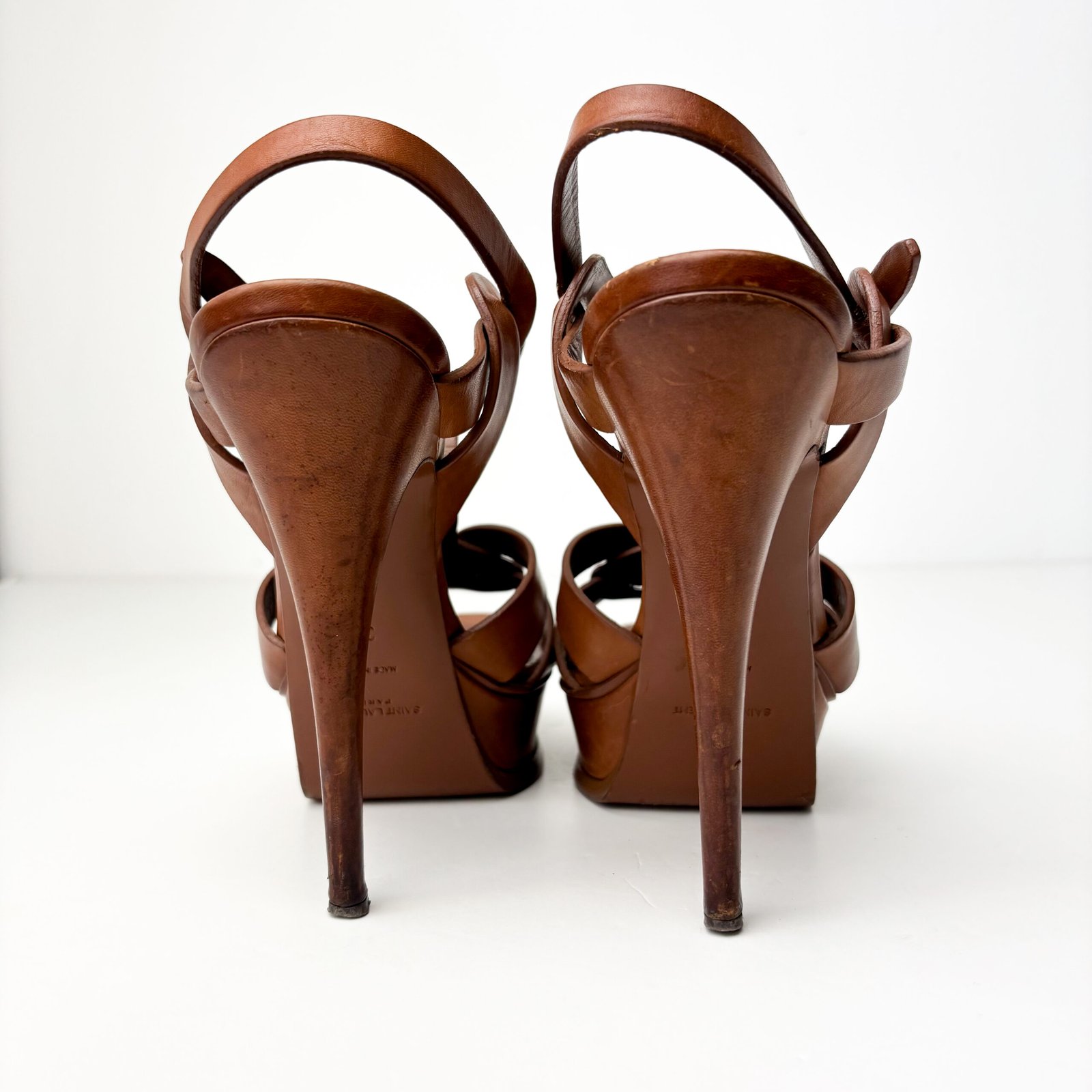 Saint Laurent Tan Leather Tribute Platform Sandals – Size 38
